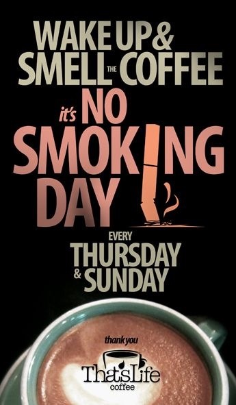 Wake up & Smell the Coffee.. It’s No Smoking Day! Terima kasih buat masukan dan saran dari teman-teman That’s Life Coffee. Hari No Smoking akan ada setiap hari kamis dan hari minggu. Thank you for supporting us! Have a great coffee day 🙂