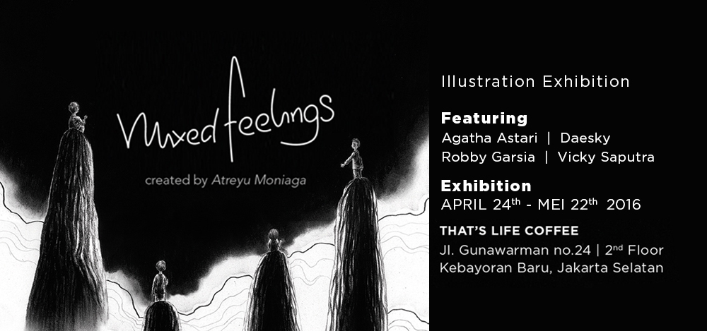 Mixed Feelings 01 adalah pameran kelompok perdana bagi empat ilustrator muda, yaitu Daesky, Vicky Saputra, Agatha Astari, dan Robby Garsia. Di dalam pameran ini, mereka akan mengimplementasikan sudut pandang masing-masing ke dalam karya yang merujuk kepada sebuah kekosongan. Kekosongan tersebut kemudian diejawantahkan melalui karya-karya yang mengacu pada prinsip “negative space”. Mereka percaya, apabila semua kekosongan ataupun ruang negatif tersebut disatukan, pada akhirnya mereka akan mengisi satu sama lain dengan baik dan mampu mencampur aduk, serta menginspirasi perasaan para audiens pameran.